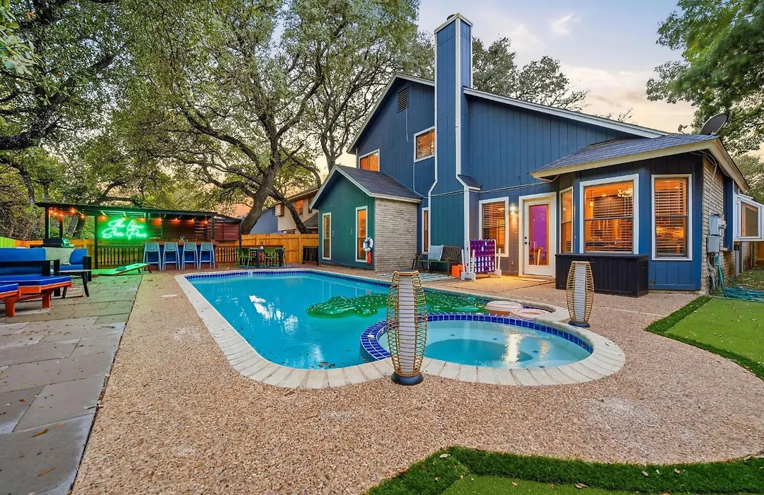 Resort Style Backyard Arcade Games Hot Tub San Antonio